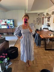 Loved this dress, the subtle sweetheart shape of the top was super flattering and the arms were unique. Gave great summer beach Hamptons feel. Comfy and easy. Loved it!