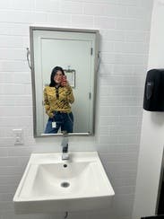 I rented this top for work and it came brand new with tags! Super comfortable and high quality - it's double knit so the interior feels smooth just like the exterior. I would say the main color is not as bright of a yellow than the image, more of a bronze yellow. I wear a 34-36DD in bras and I did notice the fabric in between the buttons gapes for me, but nothing a safety pin can't fix. The sleeves are a bit long but I feel like that's typical. It's full length but I have a shorter torso and prefer a cropped length so I tucked the hem up to shorten it a bit.