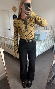 Love Ganni and this was the item I was most excited for in my order! The pattern is so fun and it’s comfortable, but the buttons bugged me personally. They gap in the chest a little bit and I found them really difficult to unbutton/button. I’m being picky but overall still liked this top :)