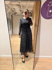 I’m sort of bummed that I sent this back because while it’s a dressier piece, it’s really fun for casual layering. The movement through the skirt is so beautiful and the print is lovely. Picture doesn’t do it justice. Will rent again.