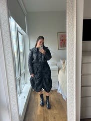 Love this jacket! It’s super light but warm and looks so cute with any outfit! I could have sized down but this size was also fine.