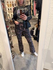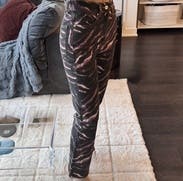 These are an animal print pant with a little difference because there is a bit of a pink wash. I got these NWT and they are so comfortable. I love that they are a unique color. I would say they are TTS. Such a cool pair of pants!