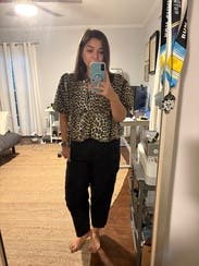 Such a cute top and didn’t show wrinkles easy. I recommend for a cute, night out top.