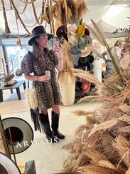 This cute leopard dress is perfect for year round. Love it with the matching tote. IG @bethielife