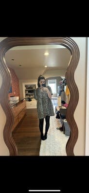 Very oversized but comfy. I wore with a tank under because it’s definitely very open with the ties (and it’s winter.) Paired with tights and boot. Would rent again and size down next time.
