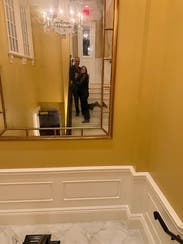 This was a great look for elevated day to evening. It’s see through, but with a blue blazer on top, it looked good and felt good