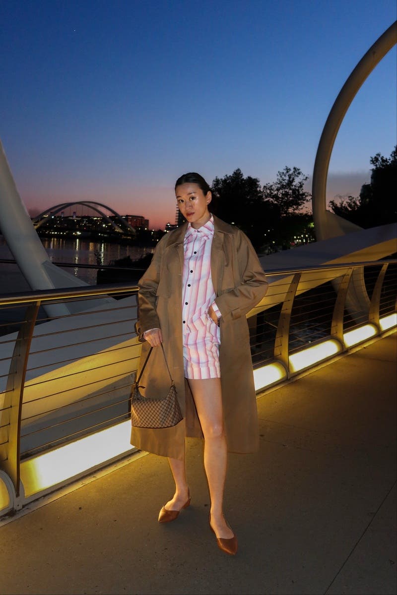 The Striped Ruffle Collar Shirt by GANNI x RTR offers a modern take on classic tailoring with its bold stripe pattern and ruffle trim collar. Pair it with high-waisted trousers and loafers for a polished, office-ready look.