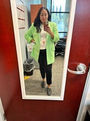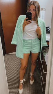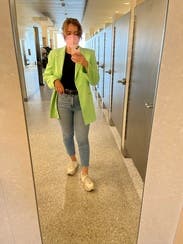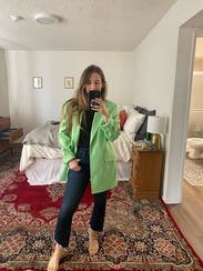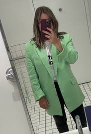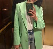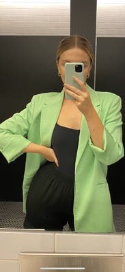 I loved this! Such a fun blazer for spring. It’s definitely cut longer than a typical blazer and reads more neon than mint IRL, but still liked wearing it.