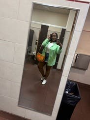 When I first tried this on I was so upset bc I thought it looked so crazy, but then I worked on it with outfit options and I ended up loving it. Definitely oversized (I'm normally a large and I think a medium would have had the same look?) and the color was more bright green/pistachio than mint. But it was still cute and fun!