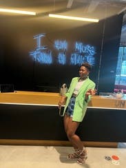 I got this blazer to pair with the matching lime green dress from the brand. The blazer was said to be oversized but the proportions were comical with super wide arm holes and shape. The color of the blazer was also slightly off from the dress if you are looking to pair them.