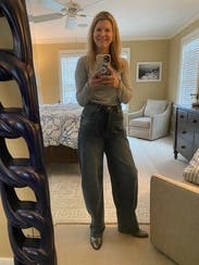 These jeans were a perfect fit. Great form fit at waist and hips and a fun flowing leg. Several people asked me the brand.