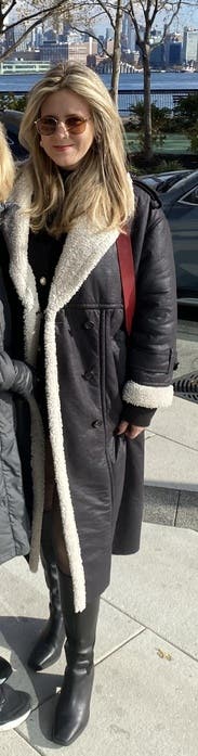 I wanted a small but only could get a medium, and it worked. It runs true to size, so I went with an oversized look. The coat is super warm, and the entire inside is shearling so it’s very cozy. I wore all week in NYC in the winter and loved it.