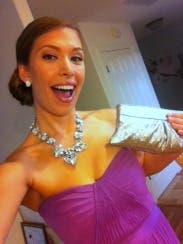 The clutched went well with my coral Nicole Miller dress I also rented. Perfect for spring!