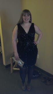 This is the PERFECT little clutch for going out! I used it for my best friend's bachelorette party and it was a great size and value. As the picture shows, it wasn't too large for my hand so it was comfortable and easy to carry all night. It fit my id, my credit card, some cash, mascara, lip gloss, my car keys, and my iPhone comfortably. It has this great, strong magnetic closure so you know nothing is going to slip out at any point. I wore it with the Nicole Miller Pitch Black Sheath dress on RTR as well (second picture; DEFINITELY recommend the dress too btw) and it was the perfect shine to go with a LBD. Like I said, I wish I could have kept it because it is a great clutch for going out, but I'll definitely rent it again. I also love that it comes in different colors to fit any outfit perfectly :)
