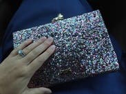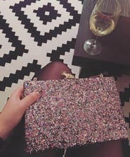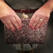 First of all, this gorgeous bag complemented my outfit perfectly. I received so many complements! It was larger than I thought, which worked well with my needs. I could easily fit all I needed inside. I would definitely rent this again! However, be aware that the texture of the glitter did get stuck on my lace dress a bit! It didn't damage the dress but take that into consideration. What an amazing handbag! Thanks again for another successful stylish night RTR!!