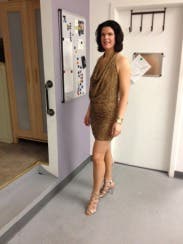 The dress was amazing despite a small spot that was missing beads. I almost emailed RTR to complain but it looked so good and I felt so confident in it that I didn't find it worth the trouble. The dress was fairly tight around the legs but was a little baggy around the belly. I wore it with a thin gold belt and it worked like a charm. Perfect for my bachelorette party!