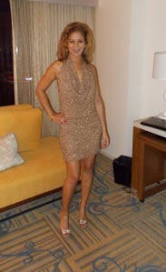 Absolutely loved this dress. The fit was great and it is just so fabulous. Really wish I owned this dress. My only complaint is that when sitting the halter pulls on your neck a little so you absolutely have to use the hook and eyes or it will pop open. I still gave the dress 5 stars because I just loved it so much. Perfect for a fabulous night out in Vegas!