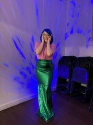I chose to size up so it wasn’t skin tight and loved it styled just as the RTR model - with joggers. Would be easy to throw on acrylic heels for a night on the town!