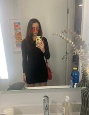 I've been eyeing Herve Lager dresses for awhile and I finally did it! Loved wearing it! Normally I'm XS but went with a small after reading reviews and it fit great. Wore with tights because it was cold. Would absolutely rent again.