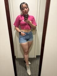 By far my favorite top and be rented. This top is a durable yet stretchy material that is just so comfy to wear. I got so many double takes and my bf loved it. I didn't wear it with a bra (34 C) and I felt comfortable, sexy and flirty. Couldn't stop taking pics in this. I would buy it but I'll probably just rent it again at some point. I love the color but didn't get the matching skirt (too much pink for me) but it paired nicely with black jeans and heels.