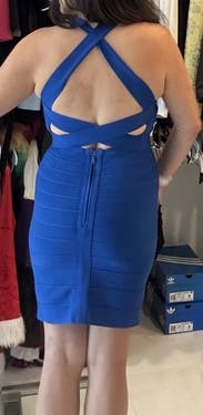 Never got to wear this out because Rona, but it's such a pretty blue. Super tight in an Herve way. Could barely zip it but would have been perfect for a party. Photographed well.