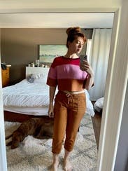 These colors are everything!! Perfect crop top. Love the material. You will not regret this rental. So great for spring/summer.