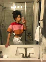 Enjoyed this whole on vacation in Maui. The material is way thicker than expected. Especially for a crop top. Which makes it hold it's shape more and be less flowy.
