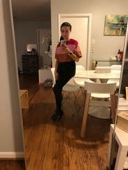 Bright colors made this crop really stand out. The material is heavy, but well structured. Only problem- lifting my arms up revealed my bra so I had to be careful. Overall, I loved it!