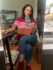 I really liked this top but it is heavyyyyy. Probably shouldn't have worn it on a 90+ degree day but it looked cute with my high waisted jeans. It's big but it's supposed to be a bit loose. I'd definitely rent this again, but maybe when it's a bit cooler out!