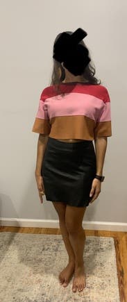 This top was such a great piece! It was a fun a spin on a cropped tee. It is actually made out of a thick, heavy, stretchy material. I received so many compliments while wearing this!