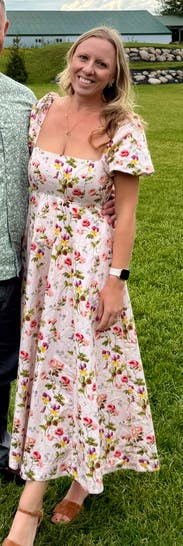 Wore this to a "garden party" themed wedding and it was great. Worth noting, this does not fit like the majority/standard Hill House dresses. I always size down in Hill House because of the very forgiving and stretchy bust area, but this is a side zipper and fitted around the top. There's a little bit of rouging in the back, but doesn't contribute to the zipper at all. I'm glad I ordered my normal size (Large) and didn't size this down like I normally would with this brand.