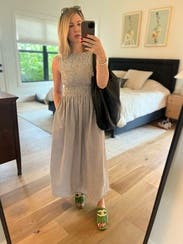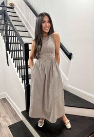 The Hill House Home Cosima Nap Dress offers a breezy silhouette with its smocked bodice and boat neckline. Pair it with flat sandals and a woven bag for an effortless daytime ensemble.
