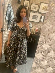 Cute last-minute rental for a baby shower. The skirt needed a quick iron out of the bag but it didn’t take much effort. The bust area fit perfectly on my chest and the length came down to about mid-shin. Another RTR success!