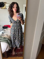 Hill House dresses are so comfortable, and this is no exception! I wish that I had somewhere to wear this, but unfortunately the prairie vibes along with the very low-cut chest meant it wasn't appropriate for any of the events that I had. I usually wear an XS in the Ellie nap dress, but a Small fit well for this style.