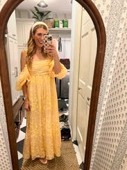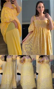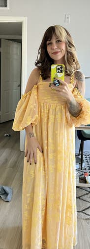 I am obsessed with this style and color. I wore this to a bridal shower and I got lots of compliments! I decided to cross the straps in the back because they kept falling down. The straps falling down wasn’t a bad look but I wanted to feel a little more secure because the bodice was a bit weighed down by the skirt. Overall, I loved this and I plan on keeping it to wear a few more times before I return. 💛