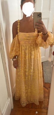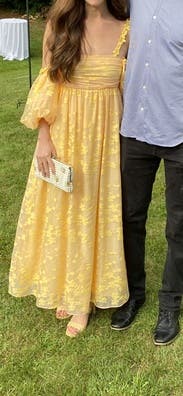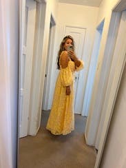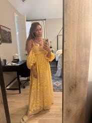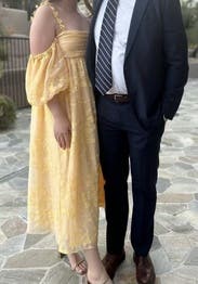 Got so many compliments! I normally don’t wear yellow but loved this one. I will say the material is on the heavier side but perfect for more formal event.