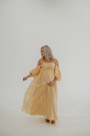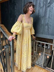 I’m a sucker for yellow and this dress was a dream. The straps are adjustable so you can make the length work for your torso. Definitely longer than a midi but not quite a maxi - to my ankles and I’m 5'8". Easy to move in so would be great for dancing.