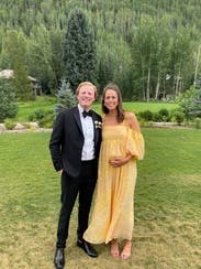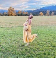 Wore at 32 weeks pregnant to a wedding! Gorgeous loose dress that fit the bump.