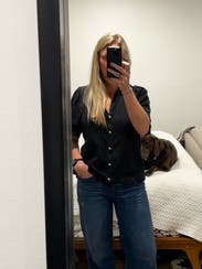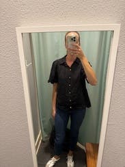 Love the buttons and scallop detail but this is too oversized for me. Made me feel sloppy. It’s comfortable for sure but fell short of actually looking sharp