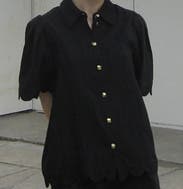 Black (60% Cotton, 40% Linen). Tops. Collared. Short sleeve. Front button closure. Shoulder to hemline length: 25.5". Imported.