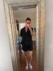 Pros: I love the buttons on this shirt and the scallops are adorable. It’s a nice summer weight but not flimsy. Cons: it’s very oversized which made it hard for me to wear untucked to show off those adorable scallops. I have the matching shorts and when worn together it looks like pajamas because of the fabric. I might try again but like 3 sizes smaller.