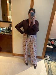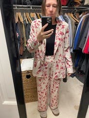 I wore these to my bridal shower because i didnt want to wear anything too "bride-y". Still early spring so I thought the flowers were nice. The pants are super comfortable, didn't love the print in person as much in the photos but overall, an easy comfortable pant.