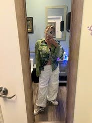 Material is like a very thick Jean jacket so keep in mind. Would love to rent for fall and pair with a chunky sweater and birks