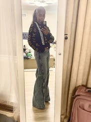 I didn’t expect to love these as much as I do as I struggle with jeans and pants in general, mostly because I have such short legs. Also, the rear view must be good - I can’t deal with denim that flattens my derrière. These have just enough stretch to accommodate my curves without losing shape. However they run large so I’d recommend sizing down one as I did. They also run really long so I had to wear my 6” heels. I loved them so much I had to buy them and might have them hemmed as long it doesn’t impact the look too much. After all, that flare is what they’re all about.
