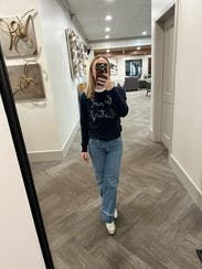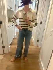 Love these jeans and so glad I sized up one. The cuffs at the bottom are so cute and they’re super comfortable. I probably could’ve squeezed into the smaller size, but he’s definitely run small. They have a great look and everything about them could be dressed up or down, depending on your mood!