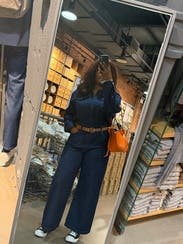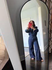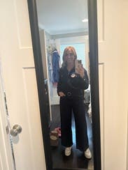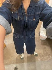 Got 3 wears out of this jumpsuit! I think for a more fitted (and probably more flattering from behind lol) look I could have sized down but it was super comfy! Wore once to a cute brunch with heels, another time with boots and lastly for a flight with tennis.
