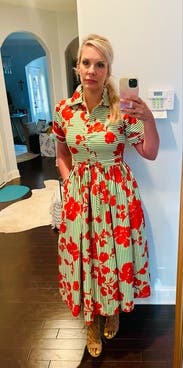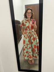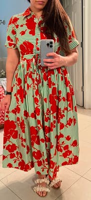 A cute shirt dress. Really great pattern and colors. Not super flattering on me but still enjoyed wearing it. I’m typically a small/medium size 4 and the small was fine
