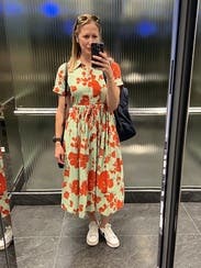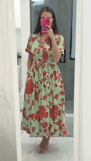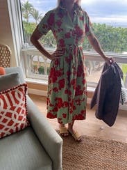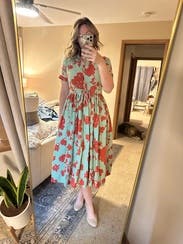 Wore this on a recent vacation where we were walking around all day so impaired with white sneakers. Such a comfortable and fun dress with pockets! I sometimes have issues with button gaping on shirt dresses, but I sized up to a Medium and it fit like a dream. I’m usually a 6 in dresses. Couldn’t love this rental more!