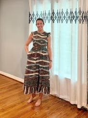 Loved this one, the colors were great for fall and the cotton fabric was just right for our warm fall weather in Dallas. Wore it 3 times!