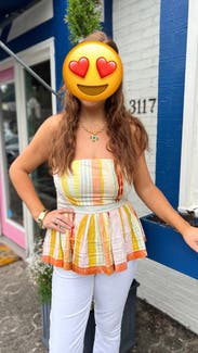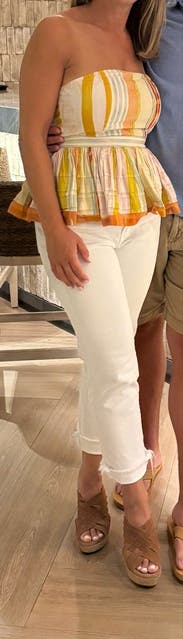 Such a cute top! Size 4 was a smidge to loose on me but ended up buying a size 2. I’ve received so many compliments.